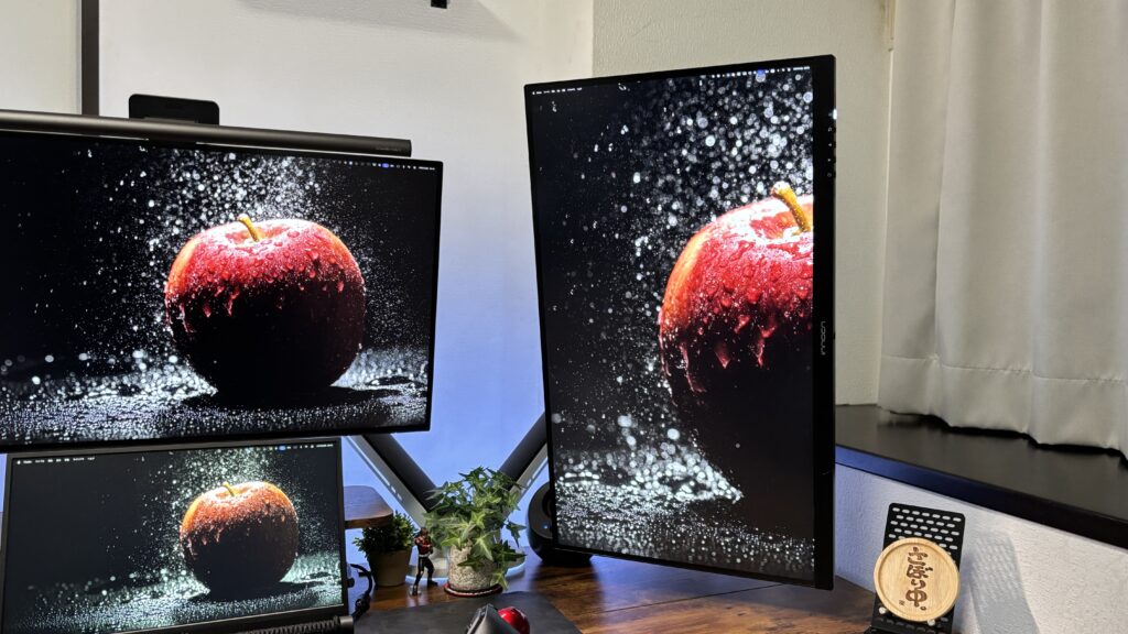 IPSパネルでリフレッシュレートは60Hz。ゲーミング用途にはちょっと物足りないけど、仕事や動画編集、ブログ作業には十分すぎるスペックだと思う。