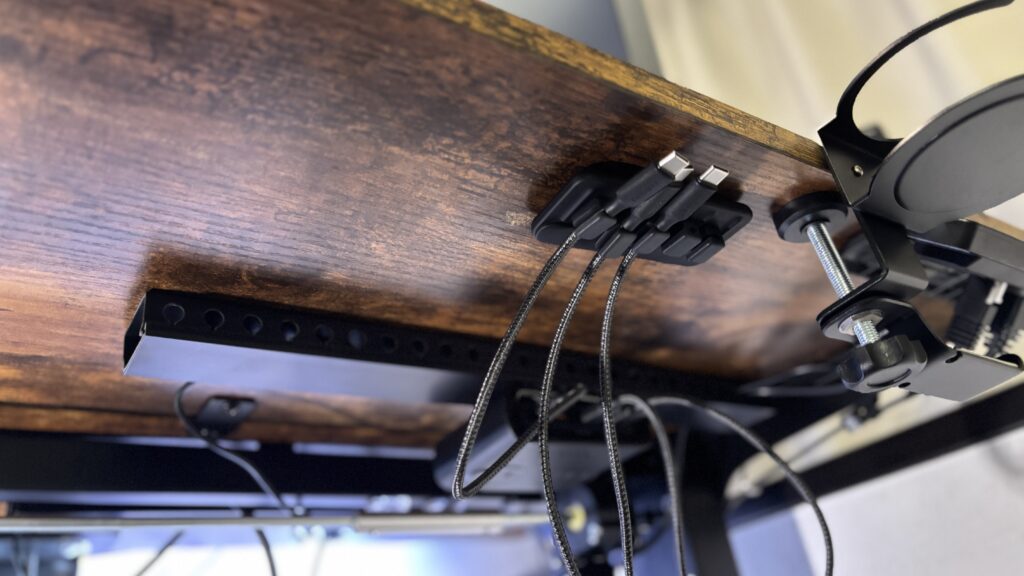 クランプ式だから設置も簡単で、ネジ止めしたくない人にはありがたい。スチール製なのでマグネットをくっつけることもできるし、両サイドに配線穴があるのでケーブルの通し方を工夫するのも楽しい。