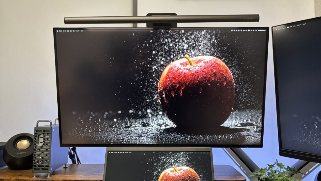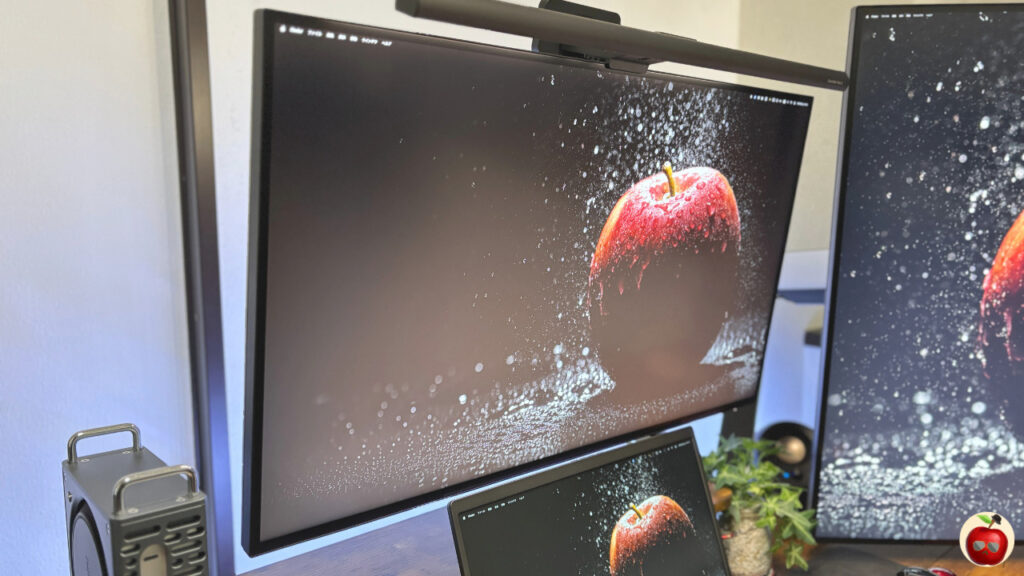 正直に言うと…普段の作業でこのモニターの画質に感動する瞬間はそこまで多くないです(笑)。でも他のモニターと並べると「黒の深さ」「色の鮮やかさ」の違いがはっきりわかります。MacBookの画面に近い色合いで、Macユーザーには特に馴染みやすいです。