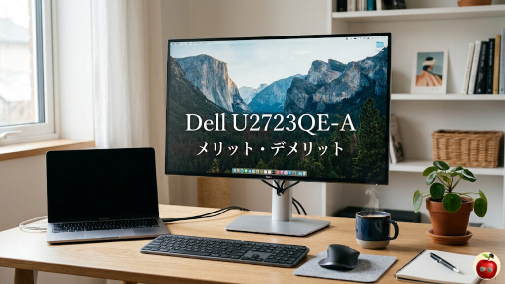 デスク周りをスッキリさせたい、作業効率を上げたい──そんな思いで愛用しているメインモニターが「Dell U2723QE-A」です。IPS Blackパネルが生み出す圧倒的な黒の深みと、前面ロゴのない4辺ベゼルレスデザイン。MacBookとケーブル1本でつながる快適さも含めて、実際に使い込んで感じた特徴10選を本音でお届けします。