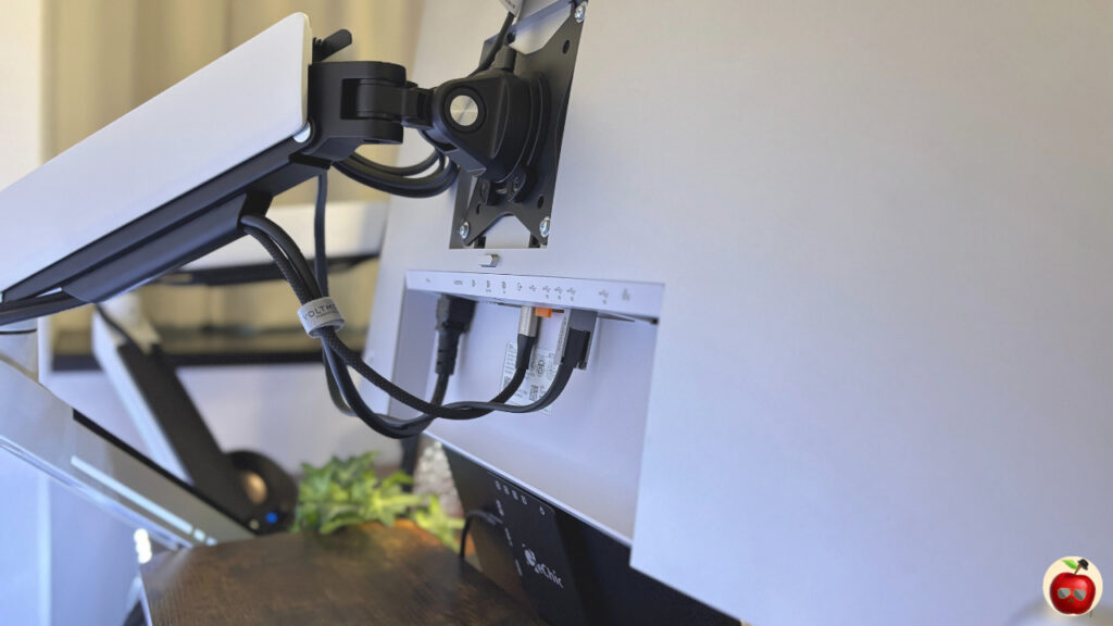- USB-C 1本でMacBookと接続・給電でき、デスクがスッキリ