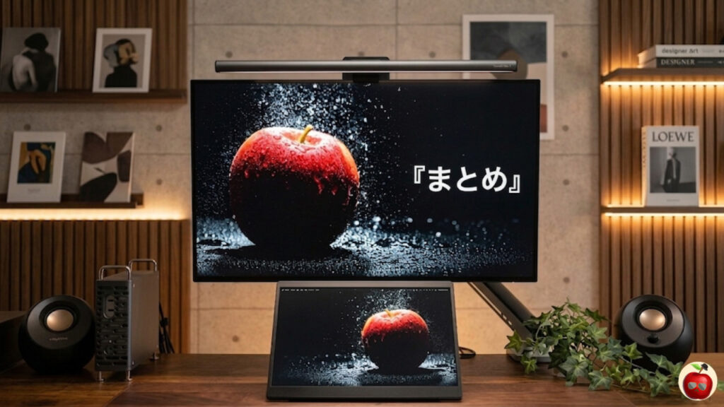 スペックをすべて使いこなせているかと言われると正直自信はない。でも「いいモニターを使っている」という満足感と、デスクの景観が整ったことで、作業への気持ちの入り方が変わりました。