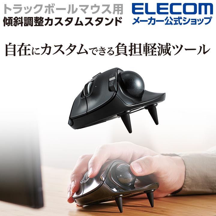 トラックボールマウスの傾斜調整用カスタムスタンド。貼り付ける位置や3種類のサイズの組み合わせにより、お好みの角度にすることができる。