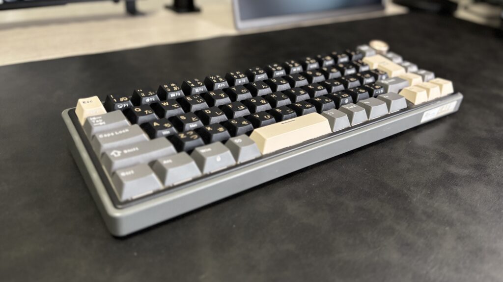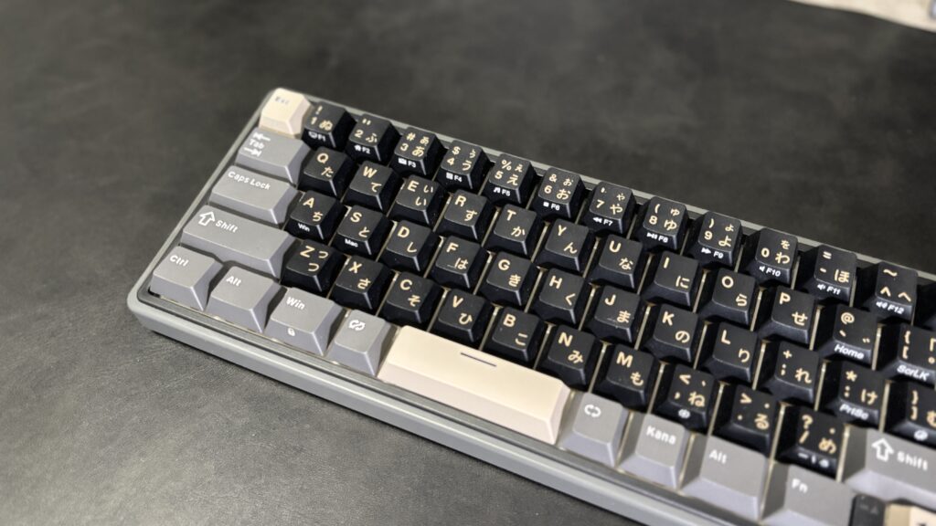 65%レイアウトはフルサイズと比べてかなり小さく、デスクのスペースが一気に広がります。マウスとの距離も縮まるので、長時間の作業でも肩や腕の疲れが軽減されました。