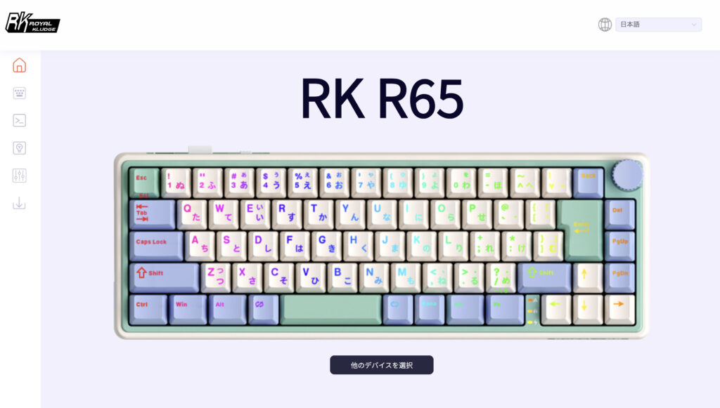 R65は専用ソフトでキーマッピング可能です。以前はWindowsのみ対応だったWebドライバーがMacにも対応しました。マクロの登録、レイヤー切り替え、RGBのカスタマイズまで可能です。