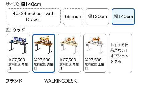 天板サイズの選択肢・シェルフ・収納アクセサリー込みで約27,500円という価格を考えれば、十分選択肢になり得る一台です。安定性を最優先するならFlexiSpot E7クラス、コストと付属品を重視するならWALKINGDESK、という棲み分けで考えてみるのがおすすめです。