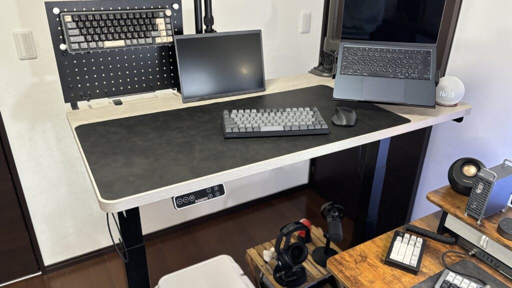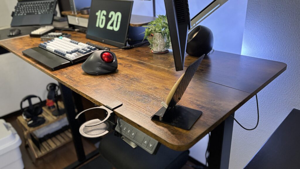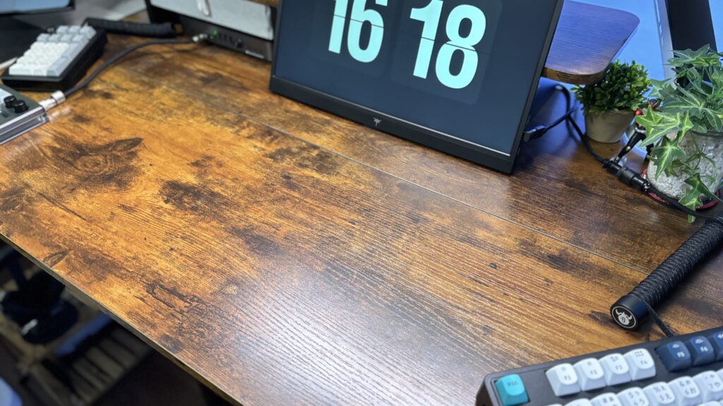 普段メインで使っているFlexiSpot E7と比べると揺れは感じます。ただ、「3万円台で電動昇降デスクを買うなら、どのメーカーを選んでも揺れはある程度覚悟する必要がある」と思っています。