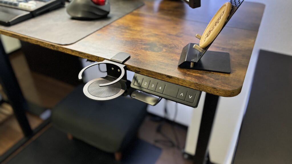 FlexiSpot E7は毎秒38mmの昇降スピードを持ち、ボタンを押した瞬間にスッと動きます。WALKINGDESKは体感でそれよりもやや遅く、操作ボタンを押してから動き始めるまでに少しラグを感じたり、ボタンがちゃんと押せたかわからず、押したのに昇降しないなと思うこともありました。